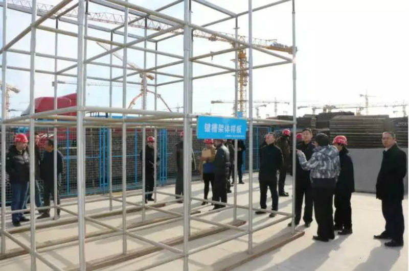 張志威總工向與會代表介紹了北京新機場項目總體情況,中建八局負(fù)責(zé)建設(shè)面積為50萬平米,將全部采用鍵槽腳手架。中建八局自2013年起使用鍵槽腳手架,三年來累計使用鍵槽架的工程項目超過150萬平米。該產(chǎn)品具有安全、施工便捷等優(yōu)點,深受中建八局各項目部喜愛。